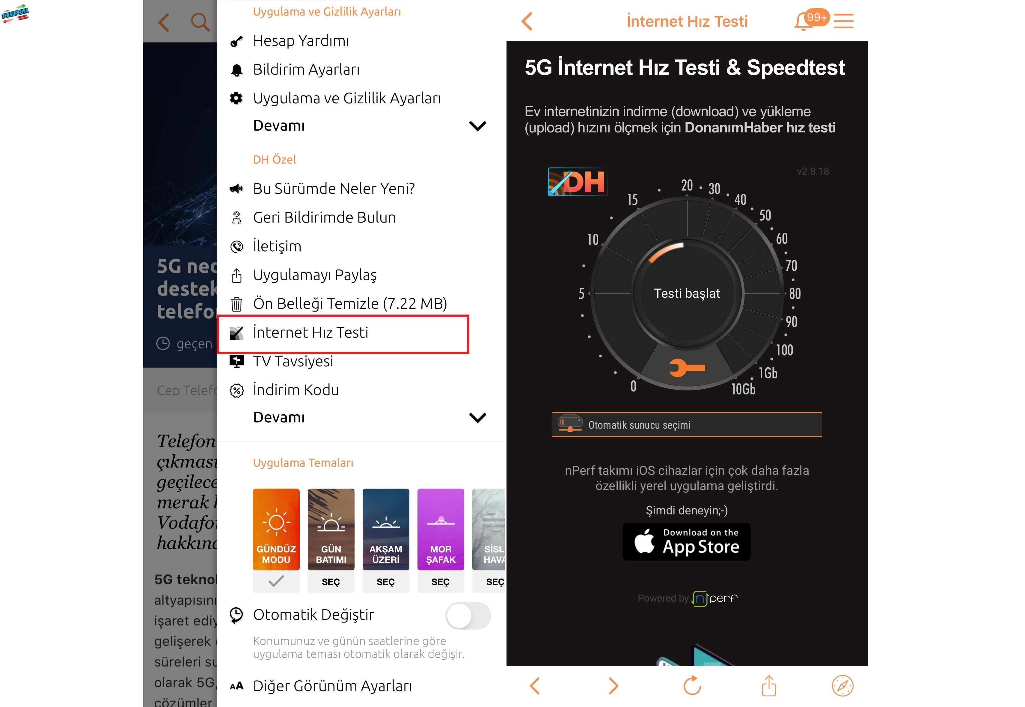 • En alttaki DH Özel bölmesinden “İnternet Hız Testi” seçeneğine tıklayın