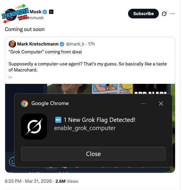 Grok Computer’in web gezintisi, farklı uygulamalara erişim, kullanıcı ile sohbet uygulamaları üzerinden iletişim kurma gibi fonksiyonları yerine getireceği tahmin ediliyor.