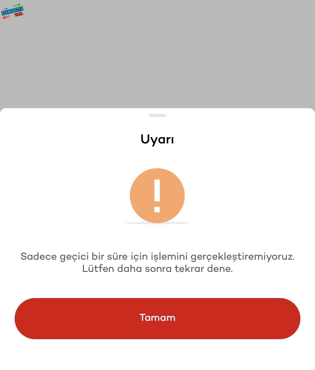 “Sistemlerimizde geçici süreyle teknik bir aksaklık yaşanmaktadır. Konu ile ilgili ekiplerimiz çalışmalarını aralıksız sürdürüyor. En kısa zamanda işlemlerin kesintisiz gerçekleşmesini sağlayacağız. Anlayışınız için teşekkür ederiz.”
