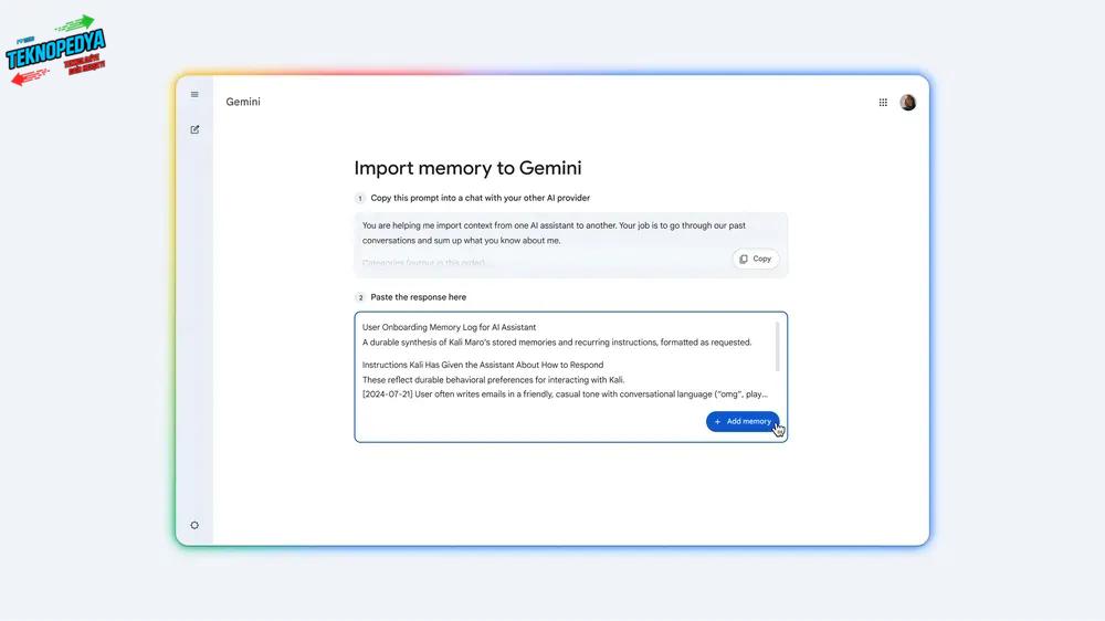 Google’dan Gemini için Yeni Hafıza Aktarma Özelliği