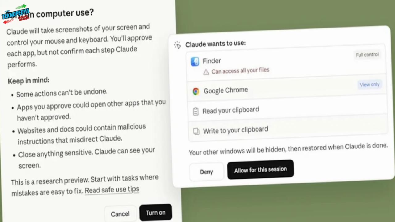 Eğer Claude, verilen bir görevi yerine getirmek için macOS üzerinde ihtiyaç duyduğu servislere veya yetkilendirilmemiş bir uygulamaya doğrudan erişemezse, kendi başına tahmine dayalı hareket etmek yerine duruyor ve kullanıcıdan açıkça onay istiyor. Bu sayede istenmeyen işlemlerin, veri sızıntılarının veya yetkisiz erişimlerin önüne geçilmesi hedefleniyor.