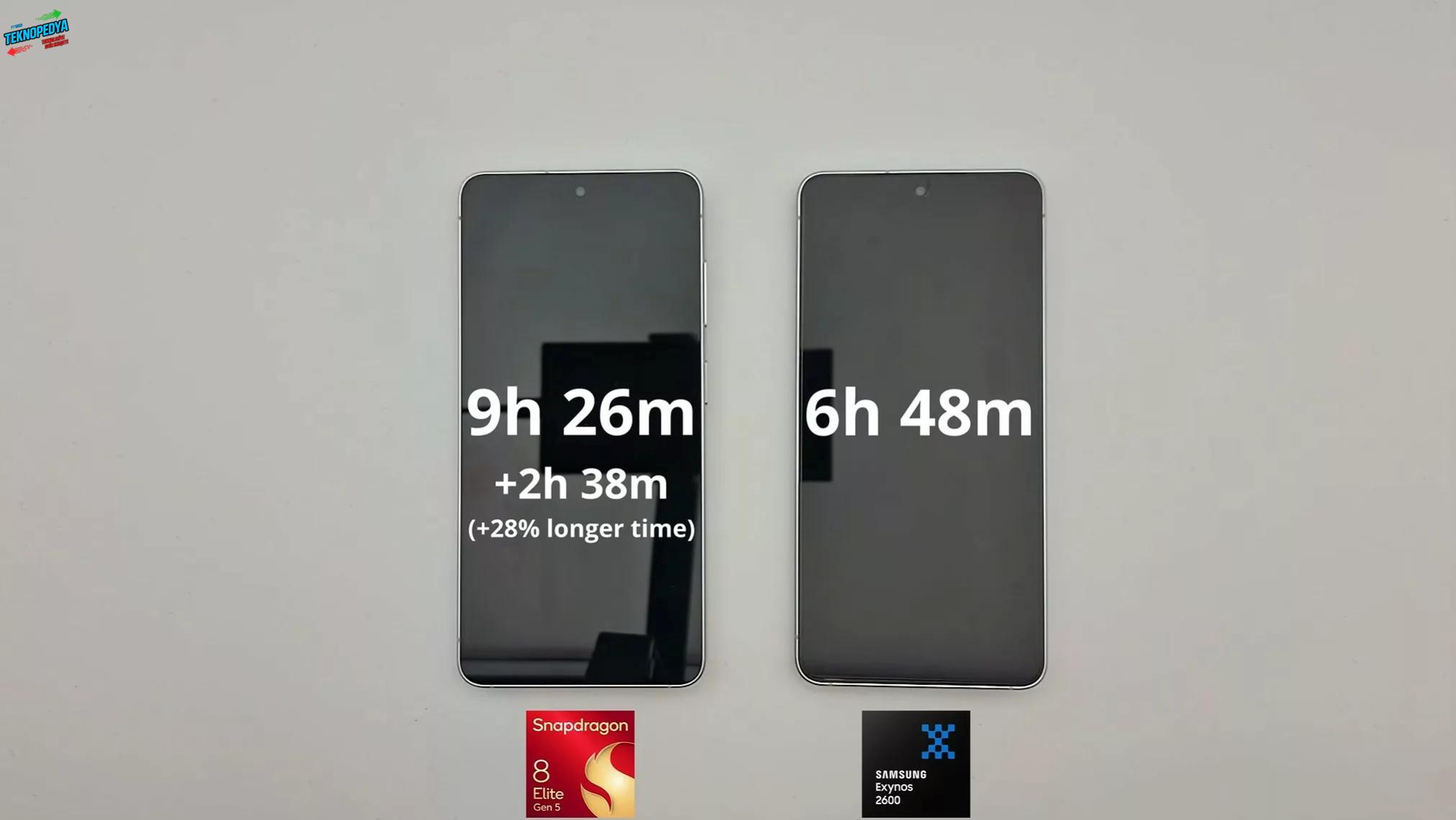 Adil bir test ortamı sağlamak amacıyla her iki cihazda da Wi-Fi bağlantısı kapatıldı ve 5G ağı aktif hale getirildi. Ortaya çıkan sonuçlara göre Snapdragon 8 Elite Gen 5, rakibine göre yüzde 28 oranında daha uzun bir pil ömrü sundu. Bu oran, günlük kullanımda tam 2 saat 38 dakikalık devasa bir fark anlamına geliyor.