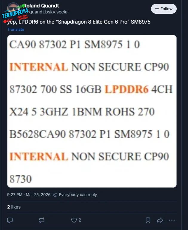Sızıntılarda öne çıkan en kritik detay, LPDDR6 RAM standardının getirdiği mimari değişiklikler oluyor. Bu yeni nesil bellek teknolojisinin, veri kanallarındaki yeniden yapılandırma sayesinde daha yüksek bant genişliği ve daha iyi enerji verimliliği sunduğu ifade ediliyor. Günlük kullanım açısından bu gelişme, özellikle çoklu görev performansında daha akıcı bir deneyim anlamına gelebilir. Arka planda çalışan uygulamaların daha stabil yönetilmesi, uygulama geçişlerinin hızlanması ve yoğun kaynak tüketen oyunların daha dengeli çalışması gibi kazanımlar öne çıkıyor.