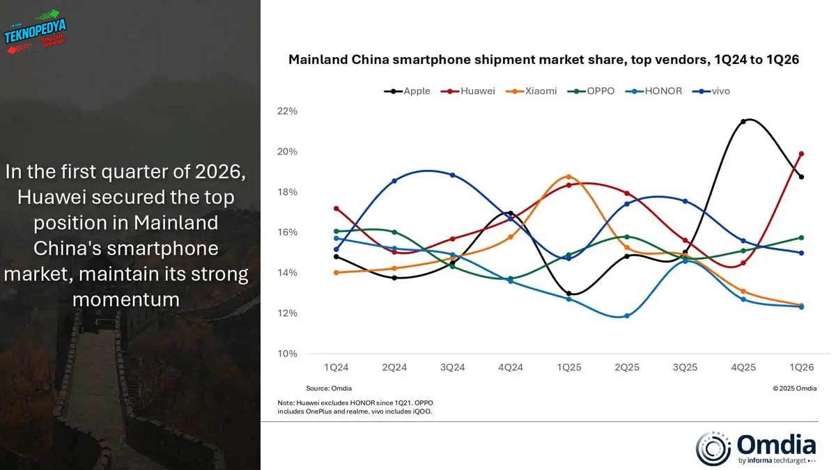Küresel akıllı telefon pazarında rekabetin dozajı her geçen gün artarken, 2026 yılının ilk çeyreğine dair beklenen raporlar gelmeye başladı. Omdia tarafından paylaşılan son pazar verilerine göre, Çinli teknoloji devi Huawei, geçtiğimiz yıl yakaladığı ivmeyi koruyarak satış listelerinin en tepesindeki yerini sağlamlaştırdı. Apple ise yoğun rekabetin yaşandığı bu dönemde ikinci sıradaki yerini korumayı başardı.