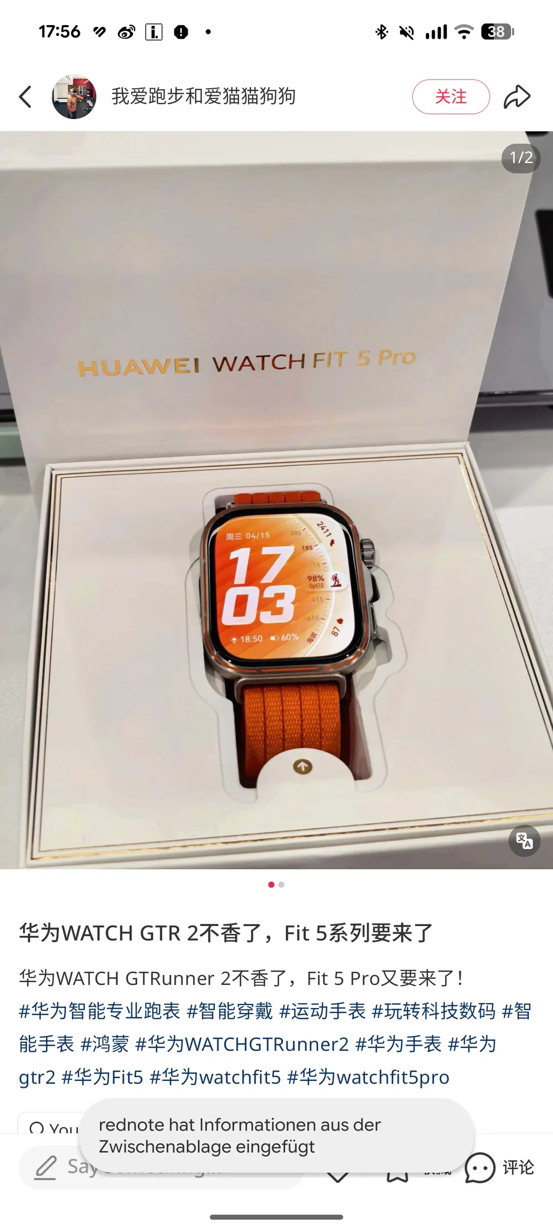 İlk iki görüntü, Watch Fit 5 Pro‘yu perakende kutusunda sergiliyor. Cihazın, kasasının etrafında turuncu çizgiler ve uyumlu turuncu dokuma kayış ile tanıdık kare bir tasarıma sahip olacağı görülüyor.