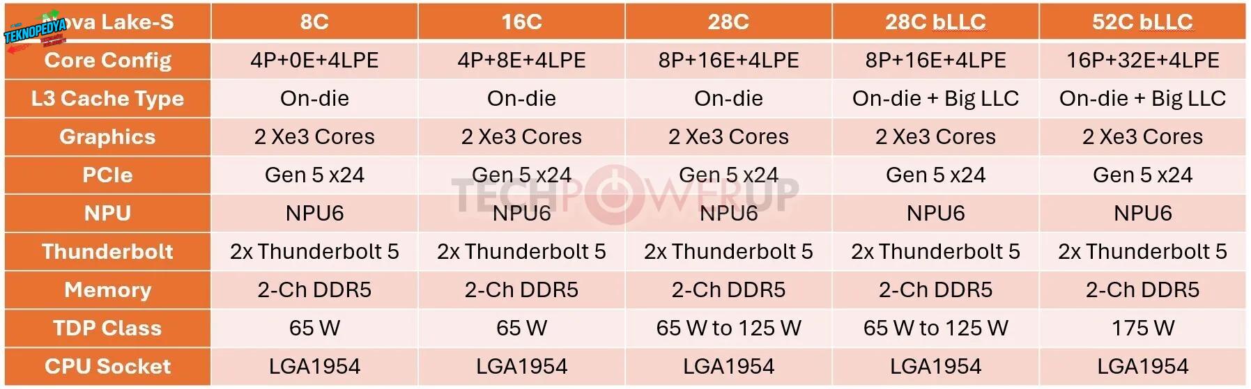 Sızdırılan SKU listesine baktığımızda; Core Ultra 3, 5, 7 ve 9 modellerinin yanı sıra, tamamen tepe seviye donanım tutkunları için tasarlanmış ve 175W TDP değerine sahip yeni bir “Core Ultra X” (52 ve 44 çekirdekli) serisinin de yolda olduğunu görüyoruz.