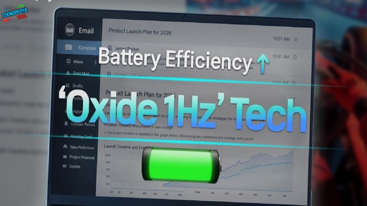 Adı belirtilmeyen Oxide materyal, elektrik yükünü daha uzun süre tutarak panelin yenileme hızını 120 Hz’den 1 Hz’ye kadar düşürmesine olanak tanıyor. Bu, güç tüketimini azaltarak daha uzun çalışma süresi sağlıyor.