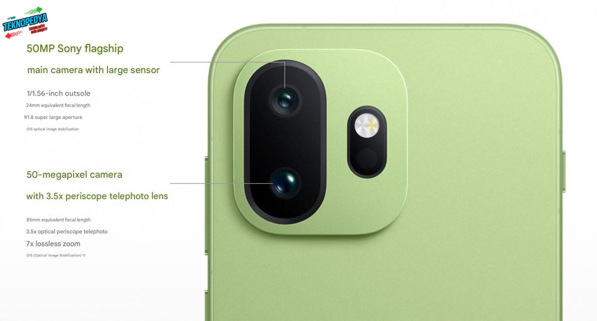 - Arka kamera: 50MP, f/1.8, 1/1.56″ (birincil) + 50MP, f/2.8, 3.5x zum (periskop telefoto)