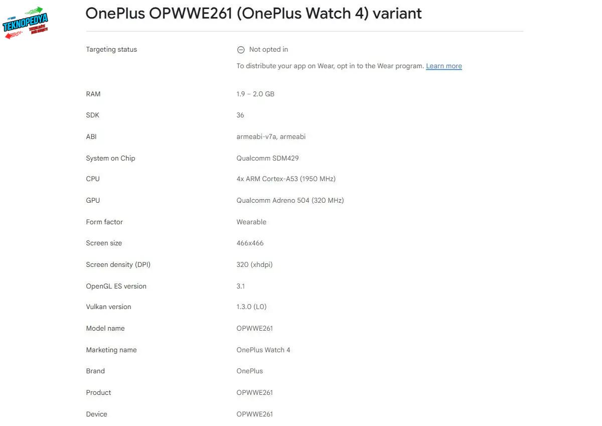 Google Play Console üzerinde ortaya çıkan verilere göre, OnePlus Watch 4 donanım tarafında oldukça iddialı bir altyapı sunuyor. Cihazın kalbinde, akıllı saatler için özel olarak tasarlanan güçlü Snapdragon Wear W5 yonga seti (SoC) yer alıyor.