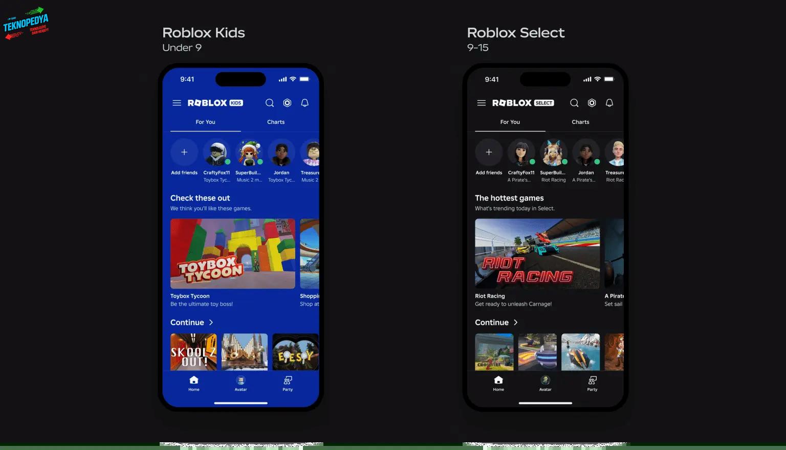 Roblox Kids hesaplarına sahip olan çocuklar, yalnızca ara sıra hafif şiddet, kaba mizah veya korku içeren oyunlara girebilecek. Dokuz yaşından küçükler için sohbet özelliği varsayılan olarak kapalı kalacak ve sadece ebeveynlerin onayladığı kişilerle iletişim kurulabilecek.