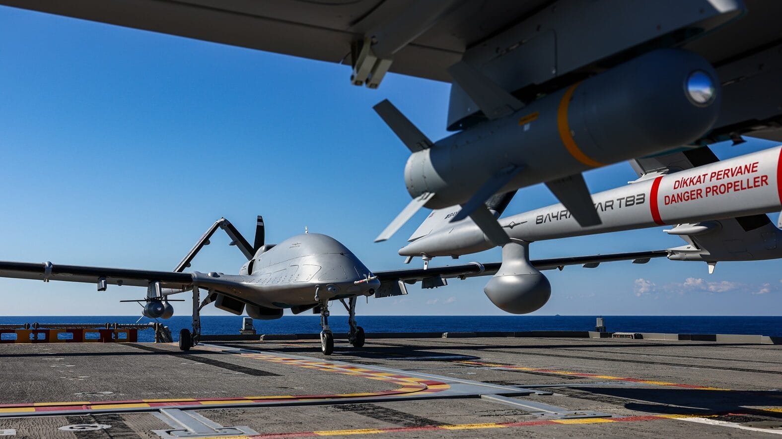 TCG Anadolu’dan kalkan Milli SİHA'lar, Doğu Akdeniz’deki Denizkurdu tatbikatında hedefleri tam isabetle vurdu.