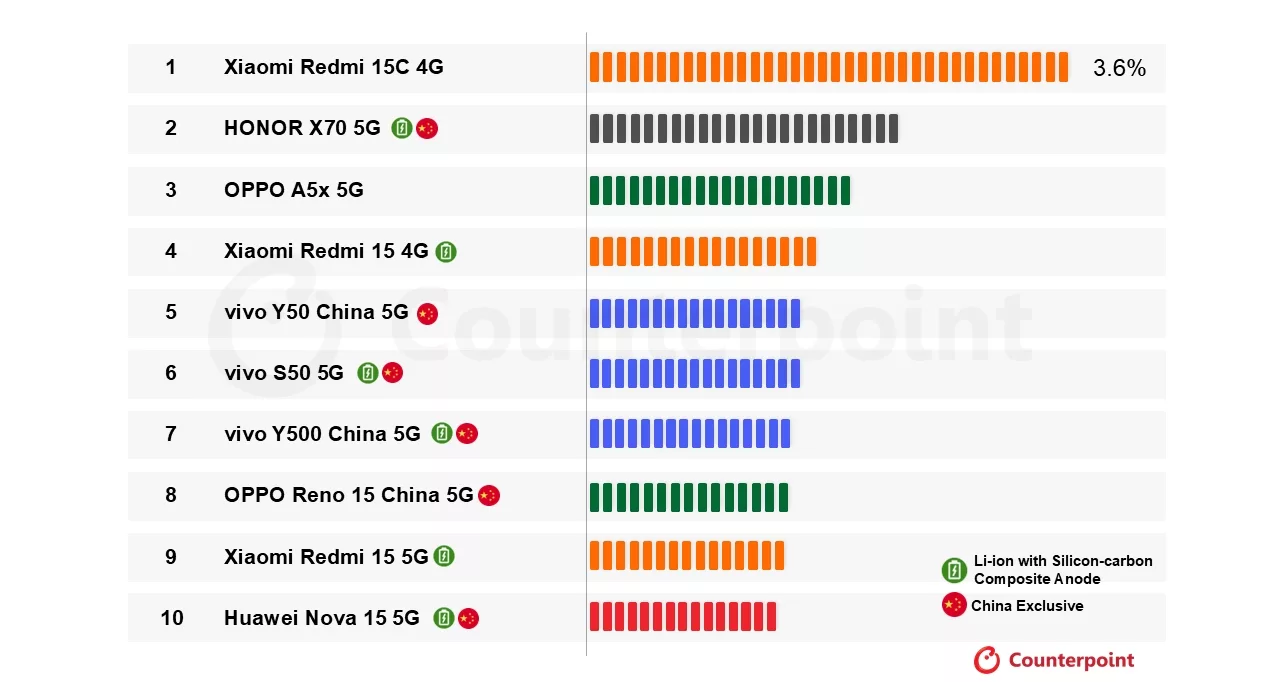 Ancak donanım sınırlarını zorlayan ve adeta şarj aletini unutturacak olan 8.300 mAh bataryalı Honor X70 5G modeli, listenin en dikkat çeken cihazı unvanını taşıyor. İşin teknik boyutuna inildiğinde, listedeki en iyi 10 telefonun altısında silikon karbon teknolojisinin kullanıldığı ve yine bu modellerin altısının sadece Çin pazarına özel olarak satıldığı görülüyor.