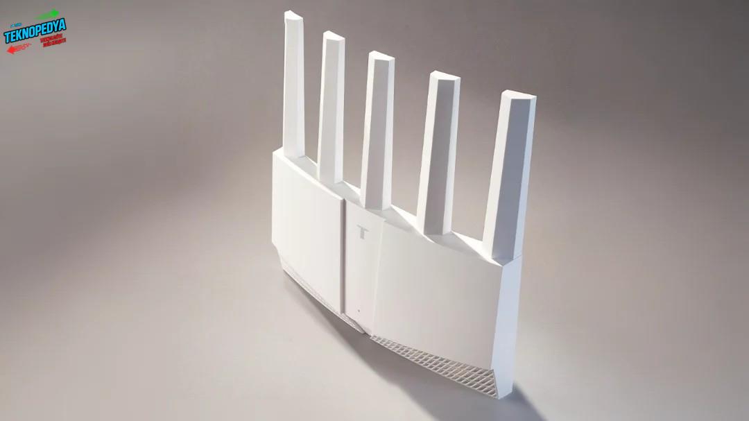 Cihaz ayrıca, yapay zeka destekli “pixel anten” sistemiyle daha güçlü sinyal ve daha iyi duvar geçiş performansı vadediyor. Akıllı anten sistemi, bağlı cihazları takip ederek kapsama alanını optimize edebiliyor. Yapay zeka tabanlı parazit engelleme özelliği ise çevredeki ağlara göre otomatik ayarlama yaparak daha stabil bir bağlantı sağlıyor. 2.4 GHz ve 5 GHz frekanslarını destekleyen cihaz, 3.57 Gbps’ye kadar toplam hız sunabiliyor. Ayrıca çoklu bağlantı birleştirme sayesinde iki bant aynı anda kullanılabiliyor. 6 Ghz frekansı ise Çin’de kullanıma açılmadığından yer almıyor.