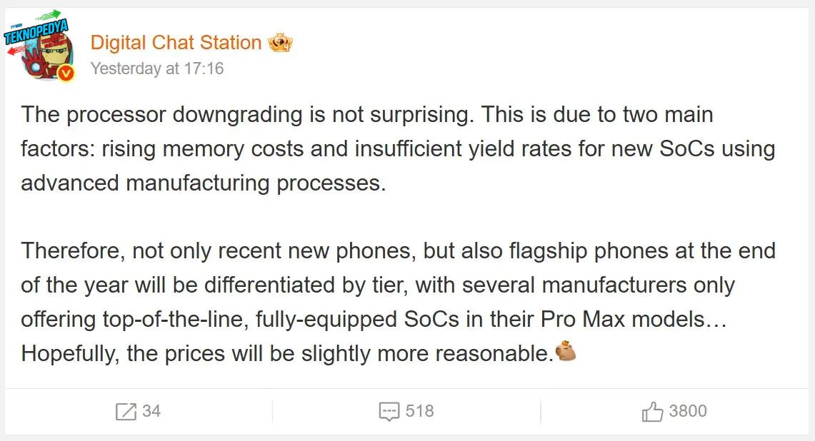 - Akıllı telefon üreticileri, en güçlü işlemcilerini yalnızca ‘Ultra’ ve ‘Pro Max’ serisi üst segment cihazlarına ayırıyor.