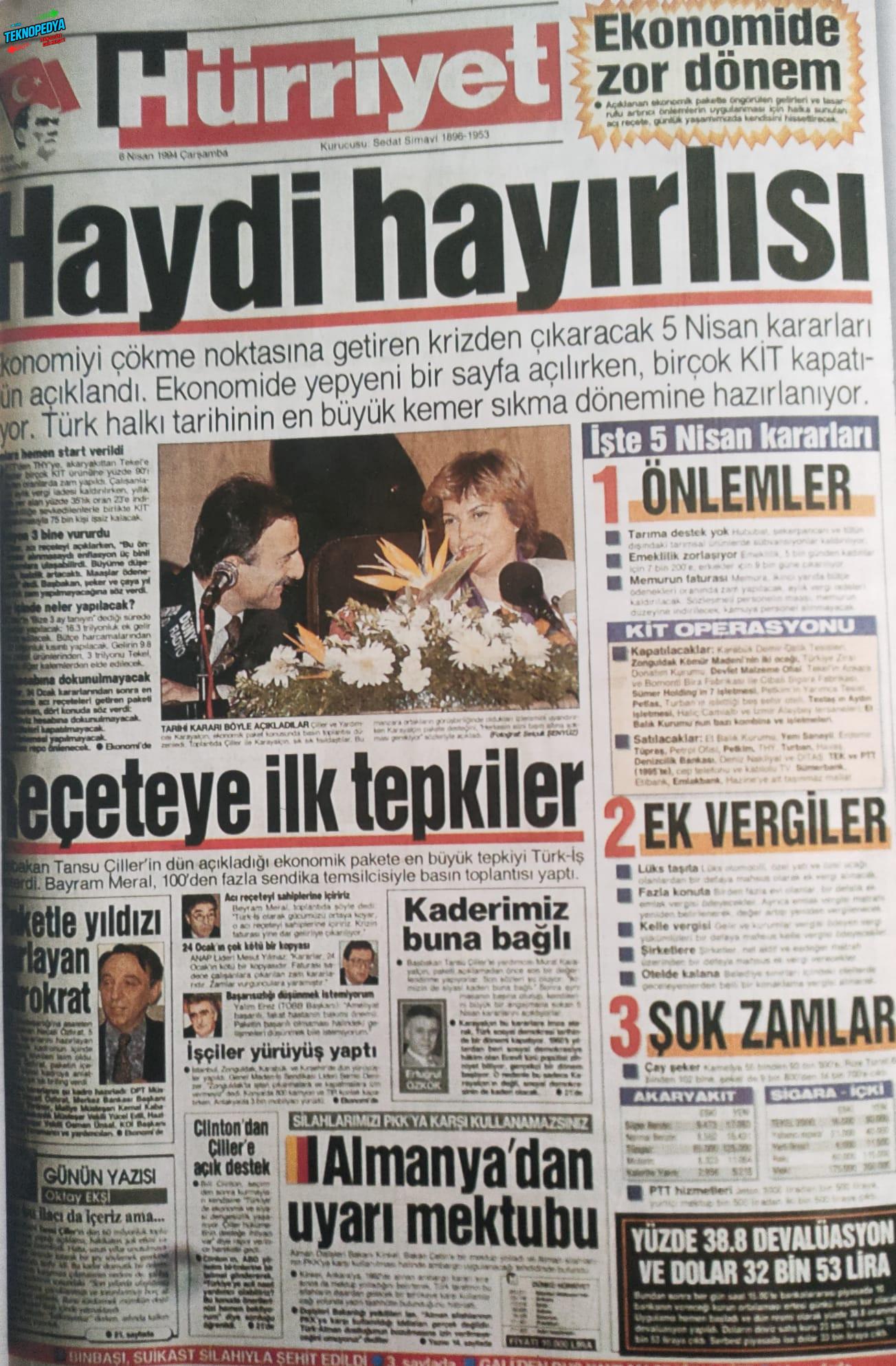 5 Nisan kararları 6 Nisan 1994 tarihli gazetede şöyle özetlenmişti:
