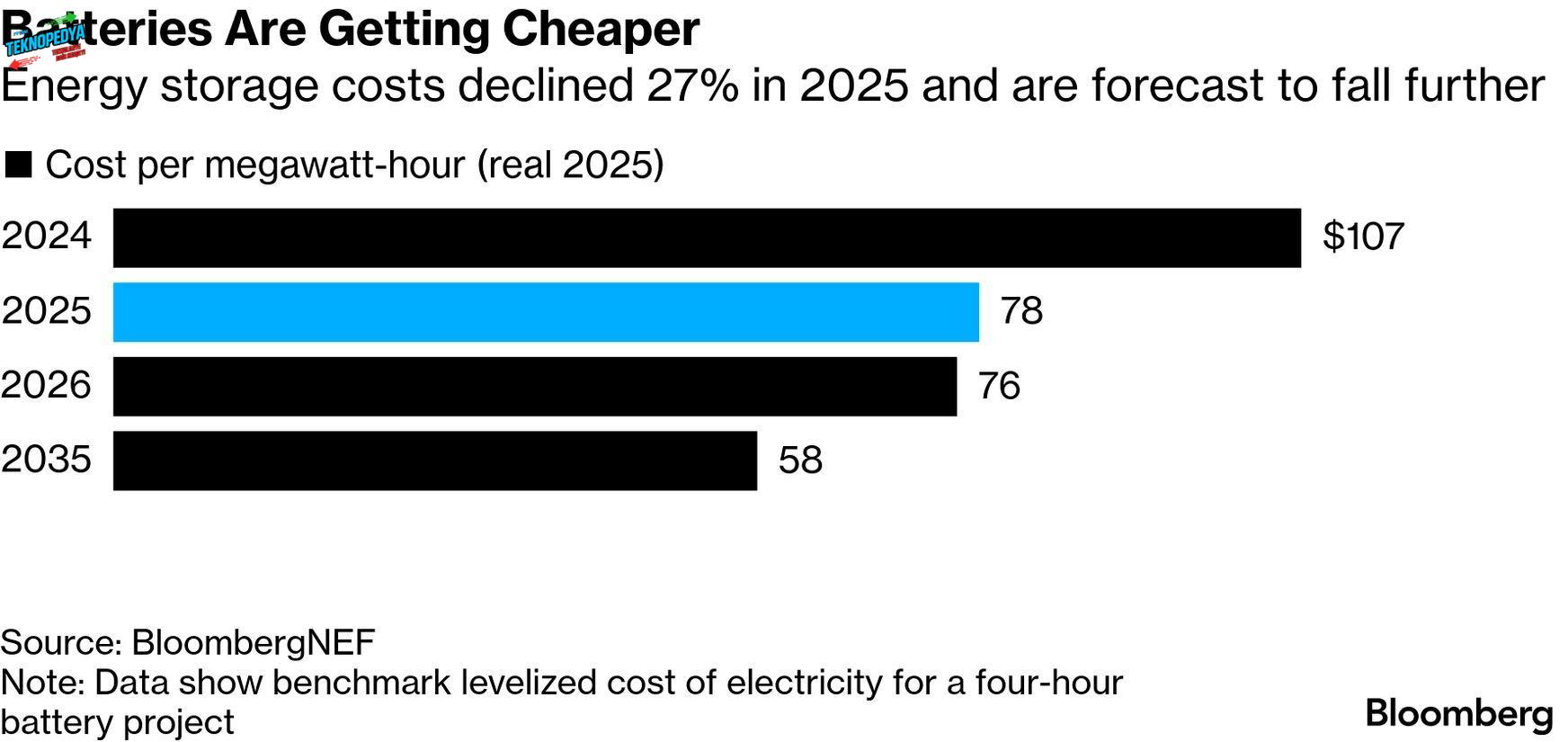 Batarya teknolojilerinin yükselişindeki en kritik faktörlerden biri maliyetlerdeki dramatik gerileme. 2018 ile 2025 yılları arasında ortalama maliyetlerin yaklaşık yüzde 75 oranında düştüğü, 2035’e kadar ise ek olarak yüzde 25 daha gerilemesinin beklendiği belirtiliyor.